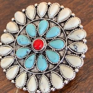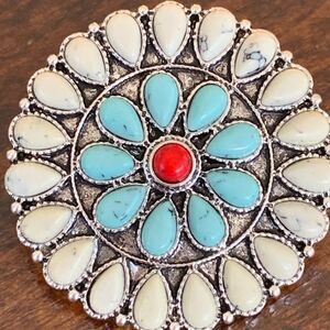 Western Concho Style Cluster Stud Earrings - Silver Tone with Turquoise Accents