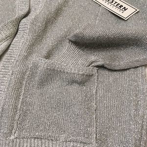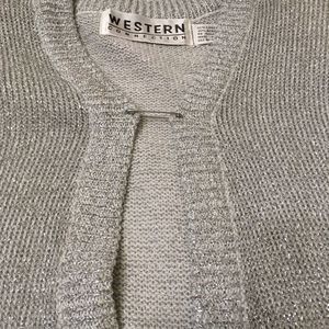 NWT Western Connection silver lame open front sweater jacket. Tagged size Medium.