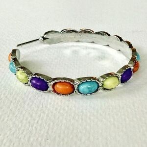 Western Style Hoop Earrings – Colorful Cabochons in Hopi Zuni Navajo Tones