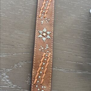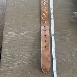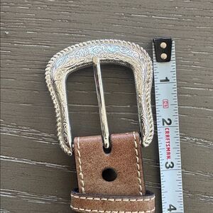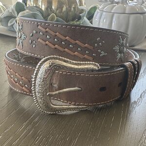 Western Tan Leather Belt with Silver-Tone Buckle Embroidered Women’s Size L EUC