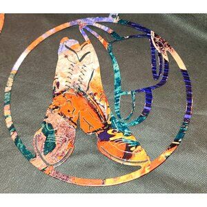 Western-Themed Metal Wall Art Set With Horse Cowboy Boot Designs NEW 8"