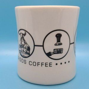 This white ceramic diner style coffee mug features advertising for Sunergos Coffee. Used like new condition. No chips or cracks. T