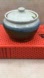 A speckled and drip glazed honey, sugar, mustard, jam jar with a lid cutout for a utensil. Perfect as a catch all / trinket jar. No damage. Dee Westfall