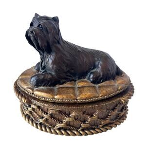 Westie Dog Oval Jewelry Box Four Leaf Clover Lining Trinket Box Vintage