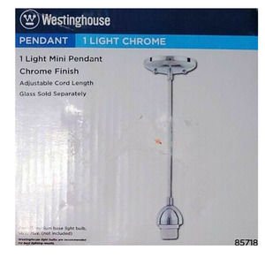 This Westinghouse One-Light Mini Pendant offers an easy way to customize your lighting. The round canopy, slender cord, and shade ring feature a sleek chrome finish that adds a modern touch anywhere in your home.