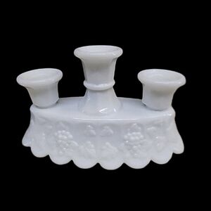 Like new. Westmoreland - 1940's Light Candlestick Paneled Grape Milk Glass Set of 2. Westmoreland Paneled Grape Milk Glass 3 Candles Holders Set of 2 - This is for a pair of milk glass paneled grape candle holders each holding 3 candles. They are beautiful and in mint condition. The size is 8 x 2.5 x 4.75 high. These are depression era glass in the highest quality.