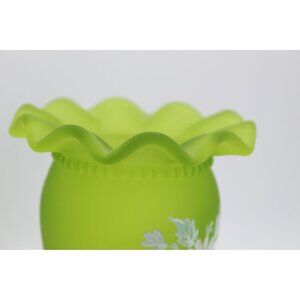 Westmoreland Frosted Green Satin Glass Pedestal Vase With Hand-Painted Floral De