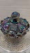 • Shape: Round covered trinket/candy box — approximately 5” wide by 4” tall