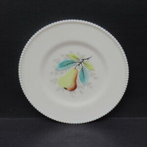 This really pretty Milk Glass Beaded Edge 10 1/4 inch Plate, featuring the hand-painted Pear, was made by Westmoreland Glass. This Plate is in very good condition with no chips or crack. The hand painted decoration is all very good. Be sure to search our other Westmoreland glass available. Westmoreland Glass Company closed in 1984.