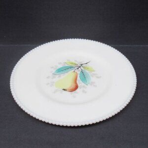 Westmoreland Milk Glass BEADED EDGE 10 1/4 Inch Hand Painted PEAR Plate