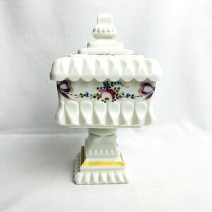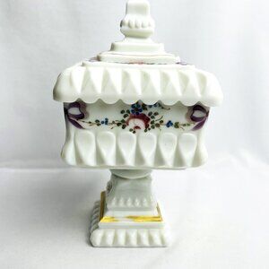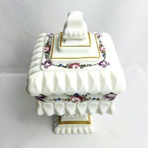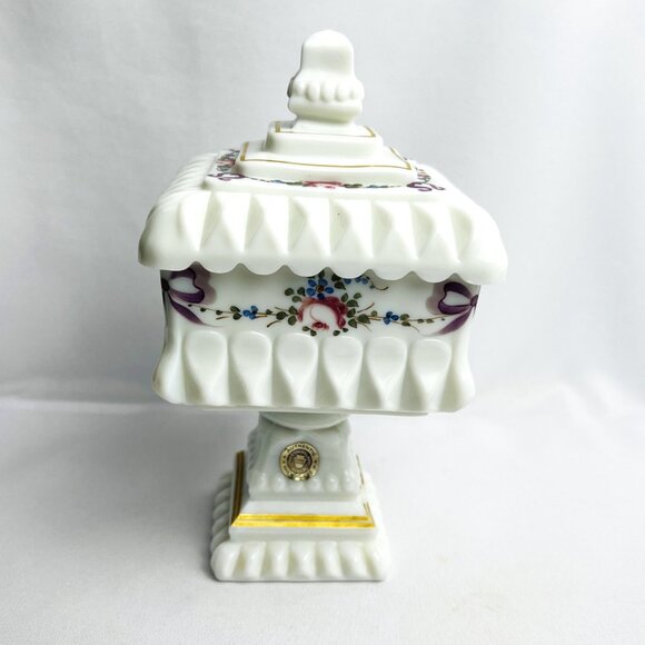 Westmoreland Milk Glass Hand-Painted Wedding Box Compote Roses & Bows 8”