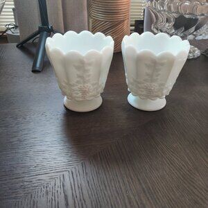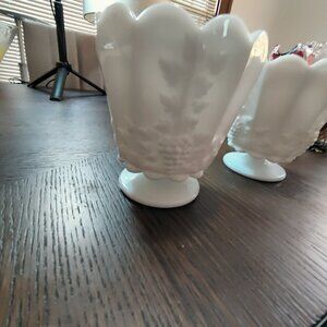 Opalicity makes this Westmoreland piece very special. Held to a light, you can almost see through it. It is elegant in form as well as very functional with its deep 4" planting, and 15" circumference. Pure White Milkglass is timeless. Vase is priced reasonably, $40 each