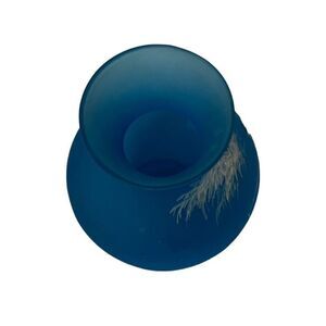 This vintage Westmorland vase, measuring 7" tall, is a stunning piece of elegant glassware that will complement any cottagecore or rustic-themed home decor. The piece features a blue satin color and an intricate Mary Gregory design of a boy fishing.