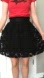 This all-black mini skirt by Weston Wear features several layers and three different fabrics for visual (and textual) interest: the netting overskirt is covered with a leaves and flower design that feels like a soft felt, and the stretchy, silky lining has two additional ruffles attached at the bottom, including one of black netting.