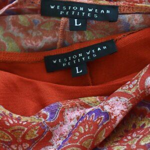 Weston Wear Fall Rich Tones Printed Patterned Stretch Mesh Dress L Petite PL
