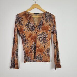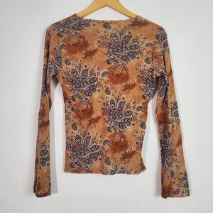 Weston Wear Top Medium Tan Floral Boho Y2K Fairy Retro 70s