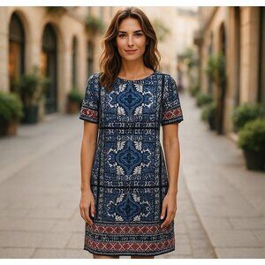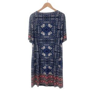 Westport 1962 Classy Blue Print Shift Dress Size 16W 1X Spring Summer Plus Size