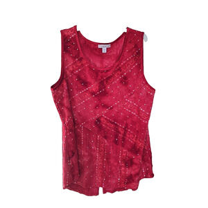 Westport 1962 Red Tie Dye Embroidered Sequin Sleeveless Tank Top Womans Size 2X. Pre-owned