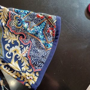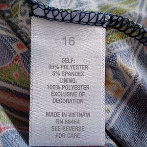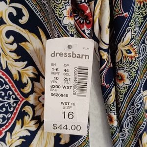 Westport 1962 DressBarn Colorful knot shift dress with beaded tassel tie neck and solid navy trim. Boho medallion, geometric, floral design. Slinky knit is comfortable and flattering. Perfect for a spring/ summer party or event, vacation, resort or everyday. Women's size 16. Please see measurements in photos. All measurements are taken flat across. NEW with tags!