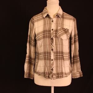 This petite flannel features super soft brushed flannel that is light weight, flattering curved hemline and versatile long sleeves that can be rolled with a button tab. Excellent condition. No rips or stains.