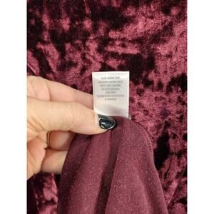 Vintage 1990s Westport 1962 crushed velvet t-shirt dress in size Small. Rich cranberry wine red with a soft, shimmering texture. Features a scoop neckline, short sleeves, and a flattering A-line silhouette with a subtle hi-lo hem. Made from a stretch blend (92% polyester, 8% spandex) for comfort and movement. Perfect for holiday parties, retro styling, or layering with boots and tights.