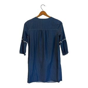 Westport Blue Denim Boho Dress Chambray Embroidered Petite 6 Cotton Shift