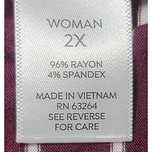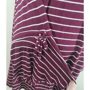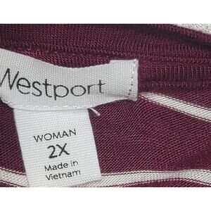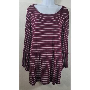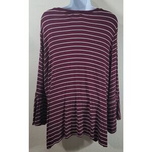Westport Burgundy White Striped Bell Sleeves Top 2X Plus Lightweight Flowy Soft