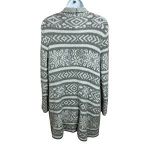 Westport Fuzzy Cardigan Sweater Sz Medium Gray White Fair Isle Long Fit Open