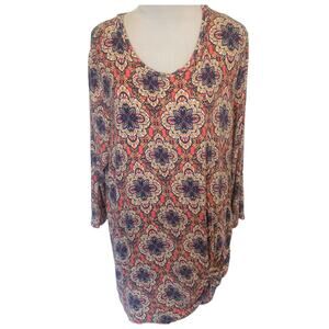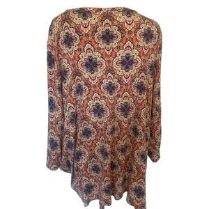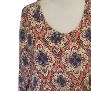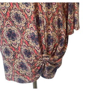 Westport Medallion Knit Top Womens Size 1X Coral W/ Twist Knot Hem Blouse