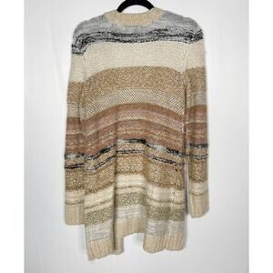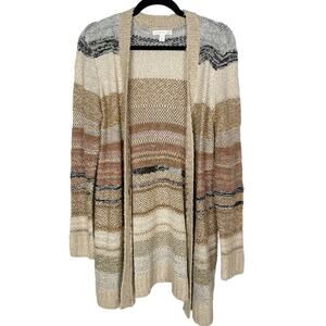 Westport Medium M Brown Blue Multi Striped Textured Open Front Cardigan Sweater