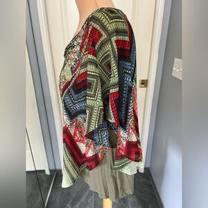 Westport Multi Color Geometric Print Layered Top Boho Hippie Vibes