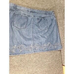 Westport Plus Denim Skirt Womens 24W Pockets Stretch Floral Dedign VGC