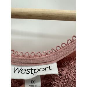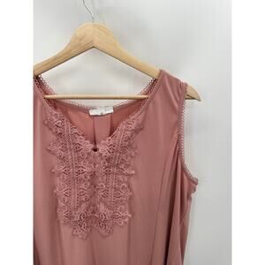 Westport Top Women 1X Pink V-Neck Sleeveless Lace Polyester Blend Tank