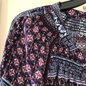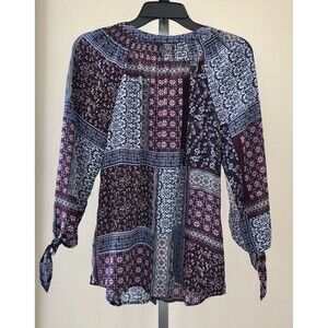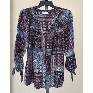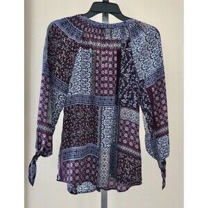 Westport Women Button-Down Shirt Medium Boho Patchwork shirt 3/4 Tie Sleeves