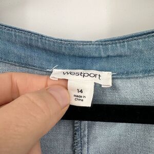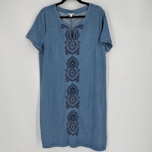 Westport Womens Split Neck Boho Embroidered Chambray Denim Tunic Dress Size 14
