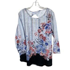 Westport Womens tunic top Sz 2X blouse 3/4 Sleeve Polyester Knit Floral stripe