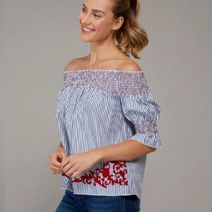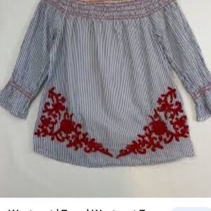 Westport embroidered smocked off shoulder blouse shirt size medium embroidered
