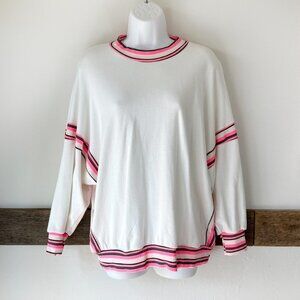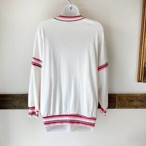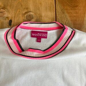 Westwind White Sweater Top Oversized White Pink Terrycloth inside Comfy! M/L