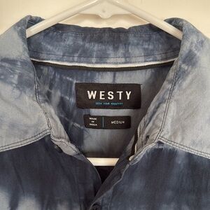 Men’s button down Fun Blue tie dye design 100% Cotton Size M