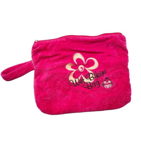 Wet Bikini Bag Dry Hot Pink Embroidered Corduroy Zip Clutch Luggage Travel