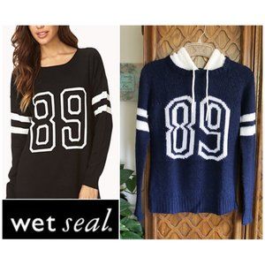 Wet Seal ‘89’ Knit Varsity Hoodie Pullover Sweater