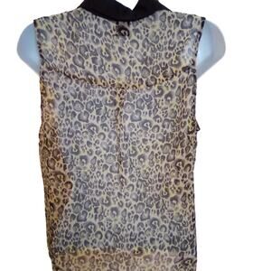 Wet Seal sleeveless button up top. Animal print. Faux leather collar. Breast pocket. Sheer.