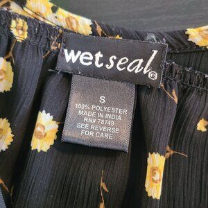 Wet Seal Black Chiffon Sunflower Print Ruffle Babydoll Tank Top Small Sheer