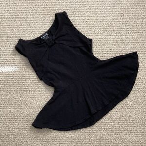 Very excellent used condition Wet Seal peplum style top in classic black. It is a fit and flare top style and on the shorter side. Pretty bow front detail. Great for casual wear or snappy casual / dressier events like date night.
