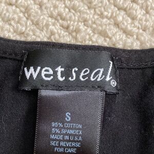 Wet Seal Black Peplum Blouse Top Bow Front Flutter Size Small RN 78749 Like New