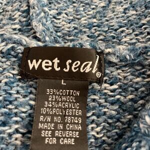 Wet Seal Blue Shawl Collar Sweater with Hood Women's L Y2K Preppy Soft Girl