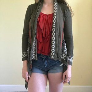 Super stretchy and comfy burnt orange tank with v-shaped ruffles. Adjustable straps. Wet seal juniors size large. Fits medium/large. Wear with olive/cream/black sweaters for the Fall, by itself or with a light kimono for the Summer.