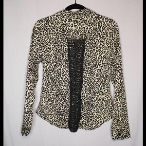 Wet Seal Leopard Print Button Up with Back Fringe Details