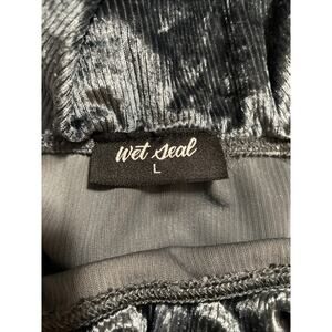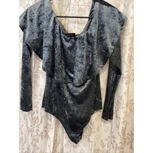 Wet Seal Steel Blue Velvet Textured Bodysuit -L Off The Shoulder Y2K/Whimsigoth