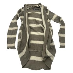 Wet Seal Tan Cream Striped Long Cardigan Sweater